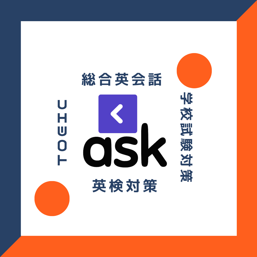 「英語力を伸ばしたい」「学校のテスト対策や高校・大学入試で結果を出したい」とお考えの方は、ぜひ「ask本校」をご検討ください。当校は完全バイリンガルのベテラン講師が揃い、中学校・高校の学校英語はもちろん、高校入試・大学入試の英語にも対応。2...
